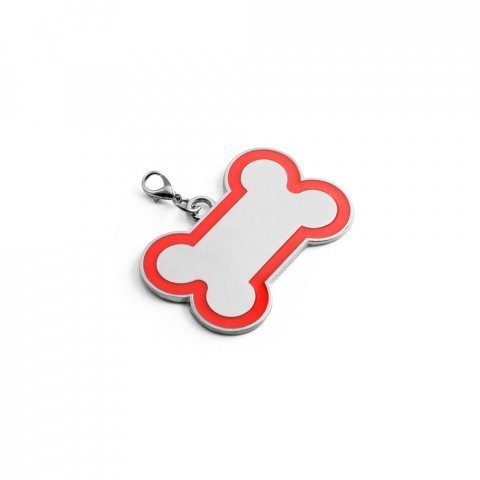 Chaveiro em formato de osso com linha colorida à volta. Ideal para identificar o seu animal de estimação. 60 x 40 x 2 mm