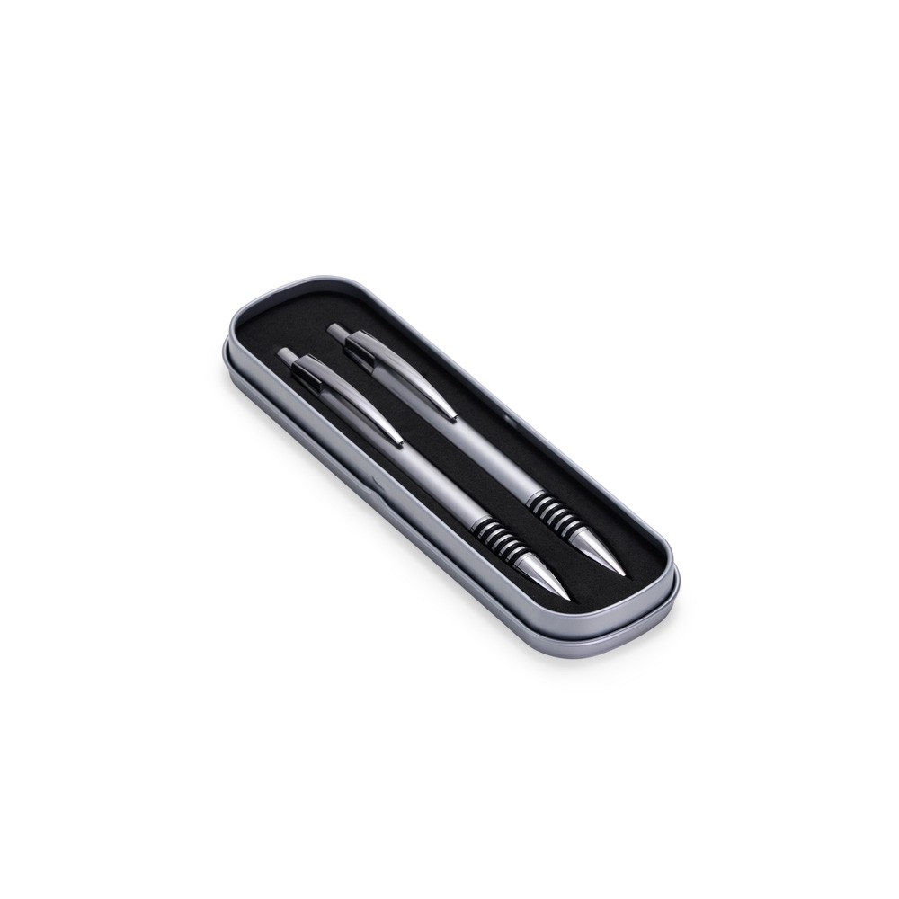 Com este conjunto de caneta e lapiseira metálicas, escrever será uma experiência ainda mais sofisticada e elegante. O estojo em metal que as acomoda, possui revestimento em espuma para evitar riscos. A caneta possui carga esferográfica azul de 1.0mm, com acionamento por clique, já a lapiseira possui grafite 0.7mm.