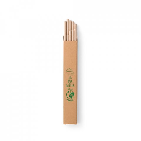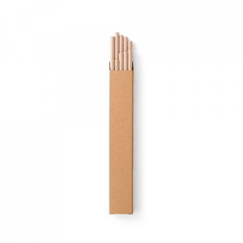 Conjunto de 10 canudos de uso único em papel kraft. Fornecidos em caixa presente de papel kraft. Canudo: ø6 x 196 mm | Caixa: 33 x 200 x 14 mm