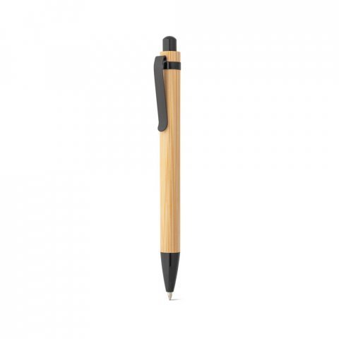 Conjunto de caderno A5 e esferográfica em bambu. O caderno de capa e contracapa em placa de bambu e lombada em poliéster 100% reciclado, contém 192 páginas pautadas em papel 100% reciclado, suporte para esferográfica (inclusa) e elástico para fecho do caderno. Esferográfica em bambu e escrita em preto. Fornecido em caixa presente de oferta de papel kraft reciclado. A cor e o resultado da impressão nos materiais naturais pode variar entre produtos. Caderno: 140 x 210 mm | Esferográfica: ø11 x 138 mm | Caixa de oferta: 160 x 255 x 18 mm
