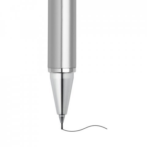 Conjunto de esferográfica e lapiseira em alumínio. Escrita em azul até 1,5 km. Lapiseira com grafite 0.5 mm. Incluso estojo. ø11 x 137 mm | Estojo: 165 x 50 x 24 mm