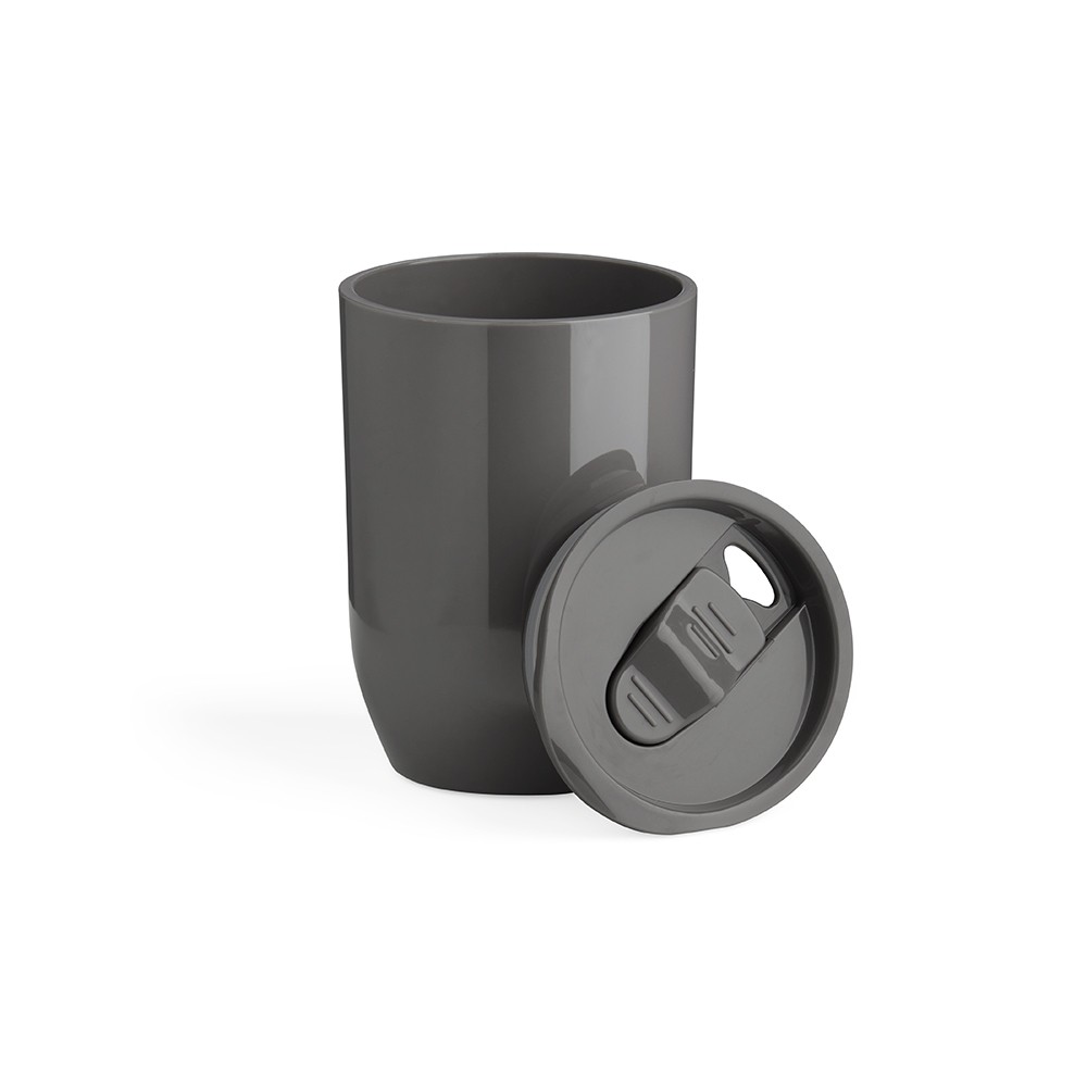 Copo plástico 350ml com tampa de pressão. Tampa com acesso e trava de segurança para o bocal. Especificações: - Altura  11,7 cm - Largura  8,3 cm - Circunferência  25,5 cm - Medidas aproximadas para gravação(CxL)  6 cm x 8 cm - Peso aproximado(g)  146