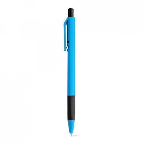 Esferográfica em ABS com grip, acabamento brilhante e corpo triangular. Escrita em azul até 1,5 km. Produto certificado de acordo com a portaria Inmetro nº423 de 8/out/2021. ø9 x 141 mm