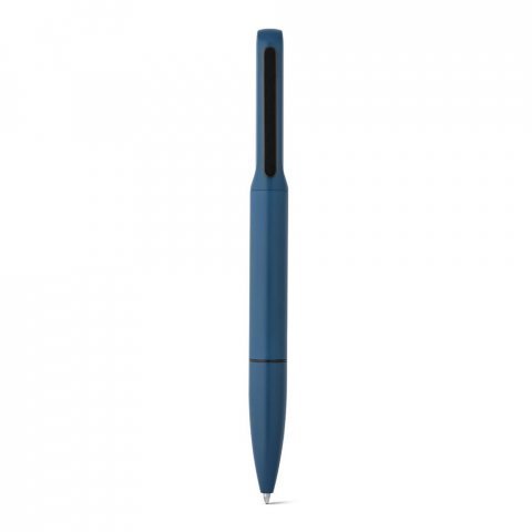 Esferográfica em alumínio 94% reciclado, com escrita em azul até 1,5 km. Quando personalizado no clipe permite que, ao ser rodado, ilumine o seu logotipo ou personalização. Fornecida em bolsa de oferta. ø12 x 140 mm
