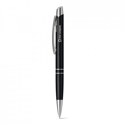 Esferográfica em alumínio com clipe de metal. Disponível numa variada gama de cores. Escrita em azul até 1,5 km. ø11 x 139 mm