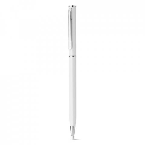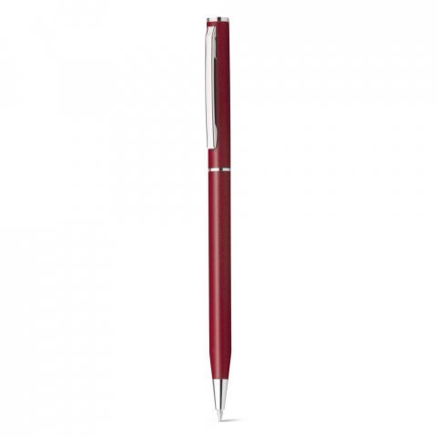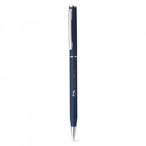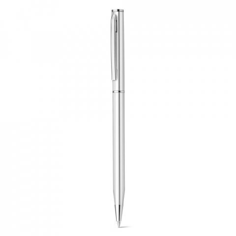 Esferográfica em alumínio com mecanismo twist e clipe de metal. Escrita em azul até 1,5 km. ø7 x 129 mm
