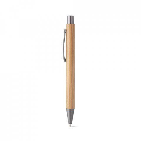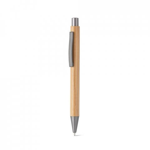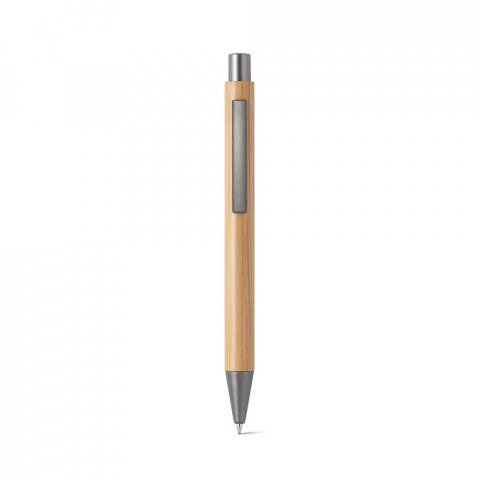 Esferográfica em bambu com clipe de metal. Escrita em azul até 1,5 km. A cor e o resultado da impressão nos materiais naturais pode variar entre produtos. Ø11 x 137 mm