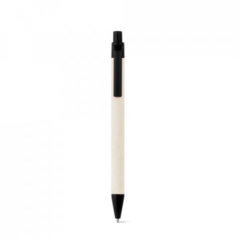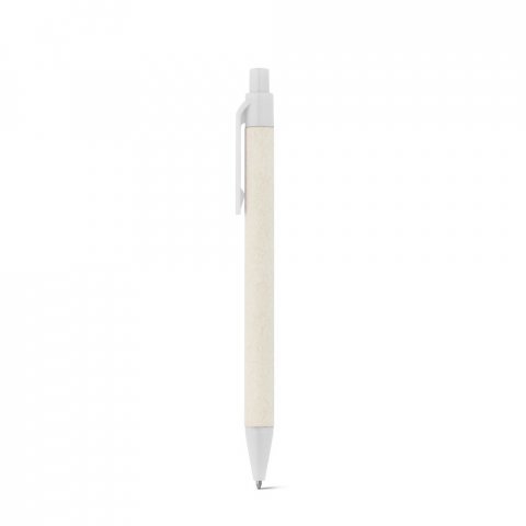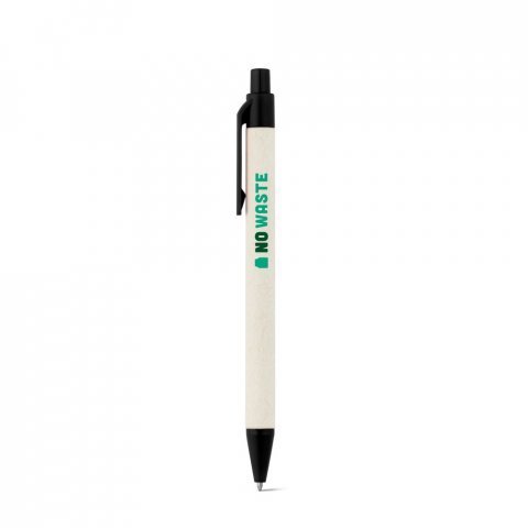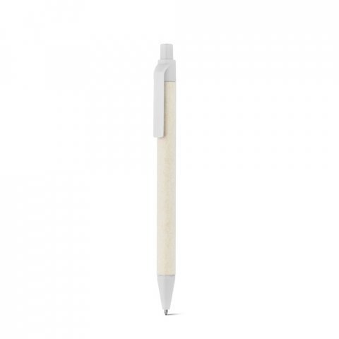 Esferográfica produzida através de pacotes de leite reciclados, contribuindo para o reaproveitamento do cartão e alumínio. Corpo em cartão e componentes coloridos em ABS 100% reciclado. Escrita em azul até 1,5 km. ø10 x 139 mm