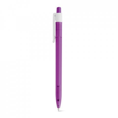 Esferográfica em ABS com acabamento translúcido e clipe branco. Até 1,5 km de escrita. ø9 x 140 mm