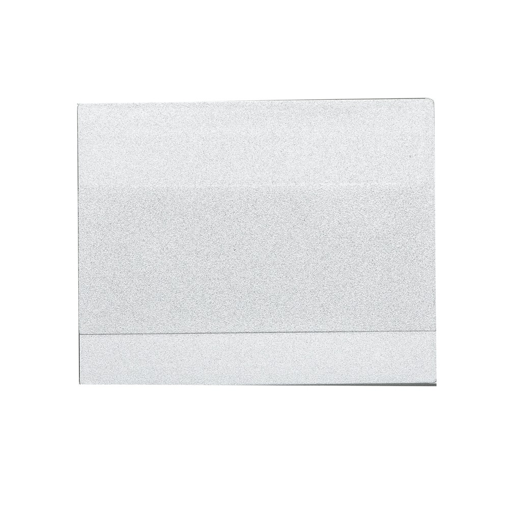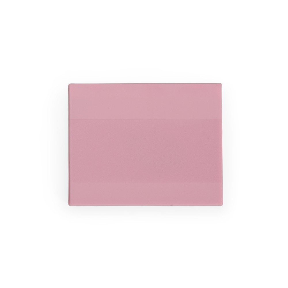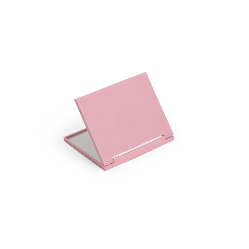 Espelho retangular duplo sem aumento, material em plástico resistente com uma faixa na superfície e verso liso.