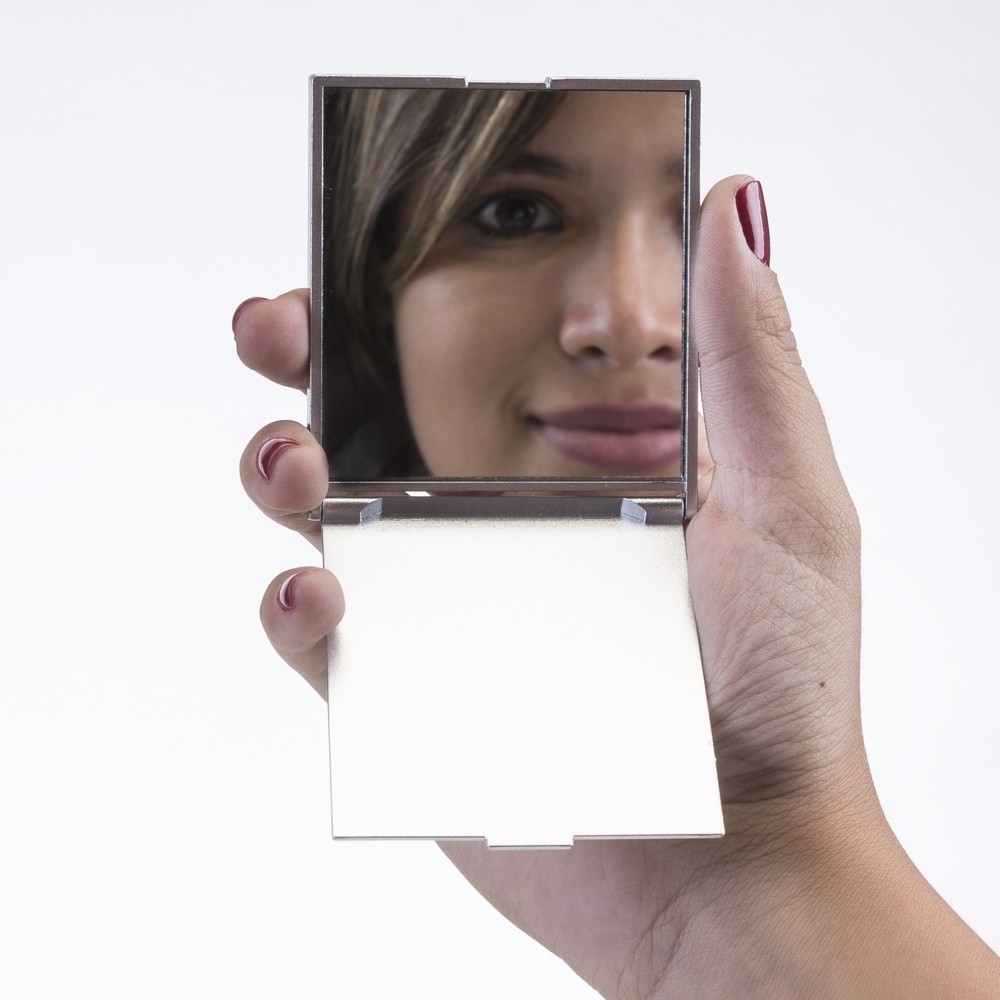 Espelho de formato retangular sem aumento com estrutura feita em plástico liso resistente. Especificações: - Largura  6,7 cm - Comprimento  7,6 cm - Espessura  2,5 cm - Medidas aproximadas para gravação(CxL)  7 cm x 6 cm - Peso aproximado(g)  27