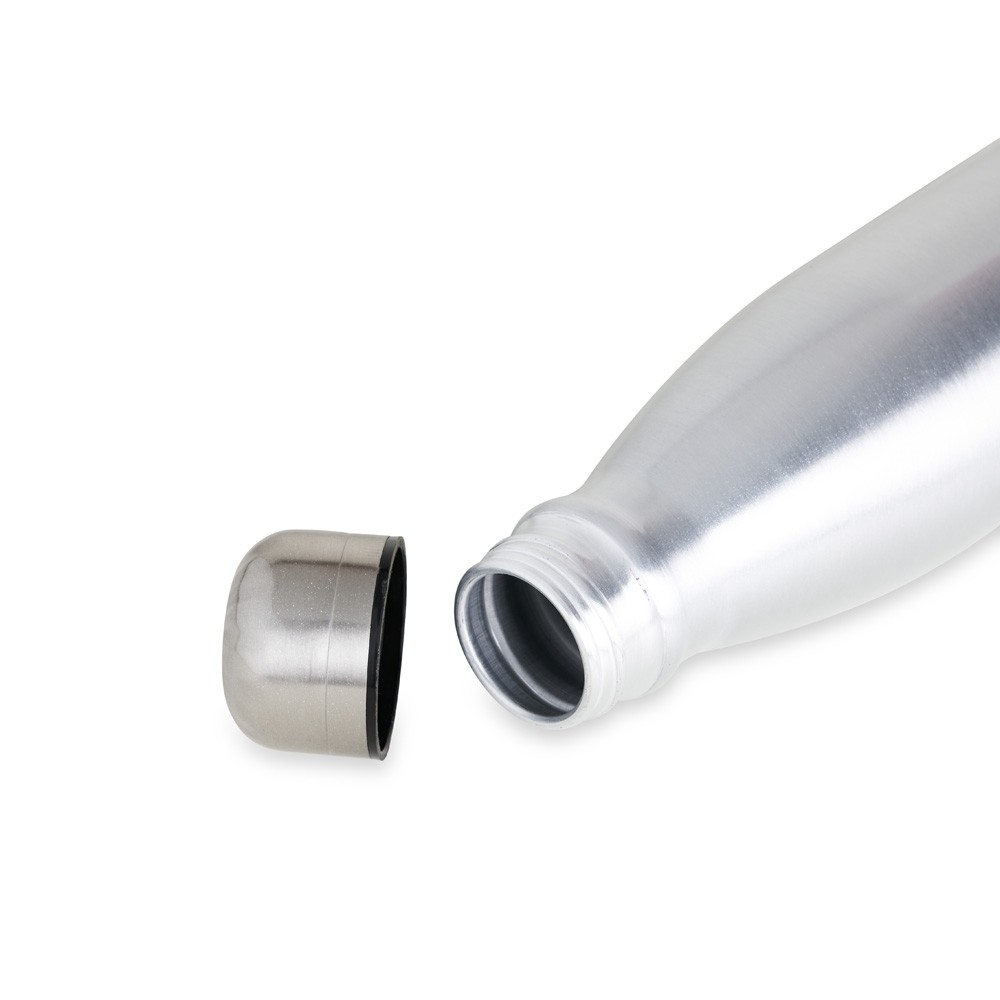 Garrafa 630ml de alumínio com tampa rosqueável e pintura metalizada