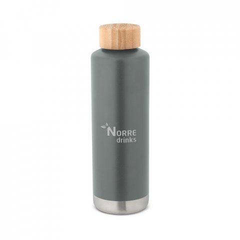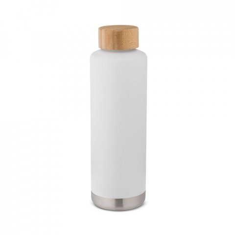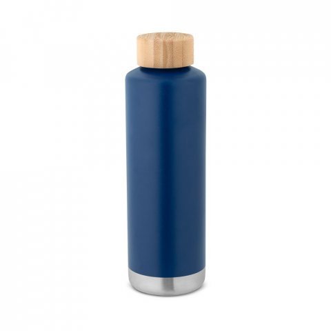 Garrafa em aço inox de parede dupla térmica, isolada a vácuo 640 mL Garrafa em aço inox de parede dupla térmica, isolada a vácuo. Possui parede interna revestida de cobre e tampa em bambu com vedante de silicone para proteção extra. Capacidade até 640 mL. Parede com revestimento em pó que lhe confere mais durabilidade e resistência. Preserva as bebidas quentes por 16 h e frias por 48 h. Fornecido em caixa presente de papel kraft reciclado. Certificação EU Food Grade. A cor e o resultado da impressão nos materiais naturais pode variar entre produtos. ø72 x 233 mm