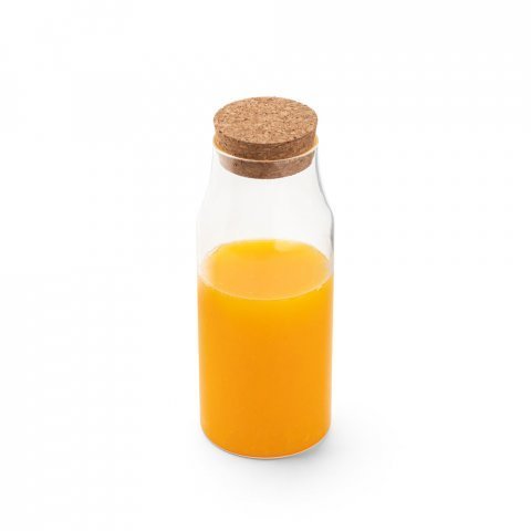 Garrafa de água para mesa em vidro borossilicato com tampa de cortiça. Capacidade até 1 L. Fornecido em caixa presente de papel kraft reciclado. Certificação EU Food Grade. ø83 x 215 mm