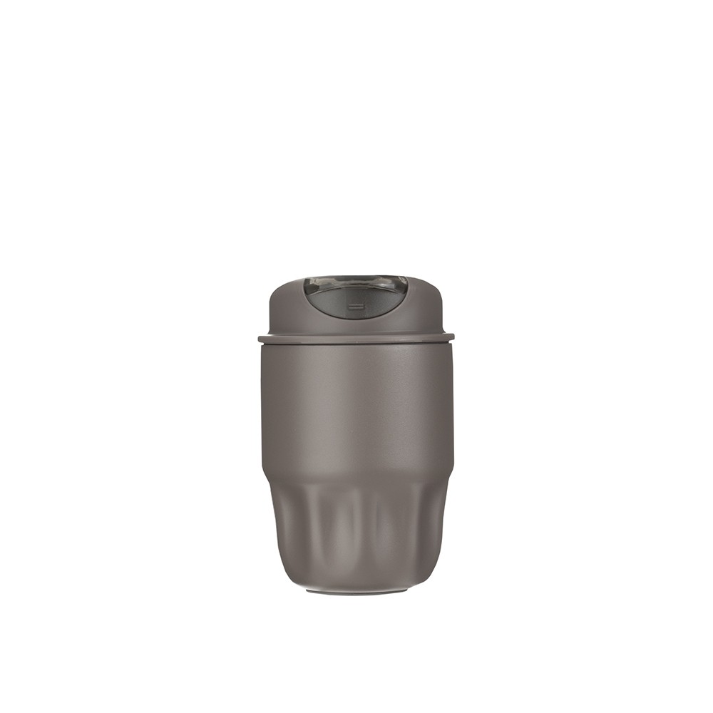Garrafa fosca em aço inox com capacidade de até 750 ml. Tampa rosqueável e anel de silicone para vedação. Design com frisos na tampa.
