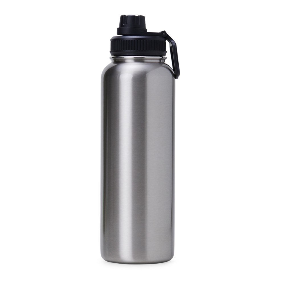 Garrafa térmica feita em inox com parede dupla, capacidade de 1,2 litros. Tampa livre de BPA com alça para transporte e tampa de proteção para o bocal. Especificações: - Altura  30 cm - Largura  9,6 cm - Circunferência  28,6 cm - Medidas aproximadas para gravação(CxL)  21,5 cm x 4 cm - Tamanho total aproximado(CxL)  Diâmetro sem a tampa 5,3 cm - Peso aproximado(g)  471