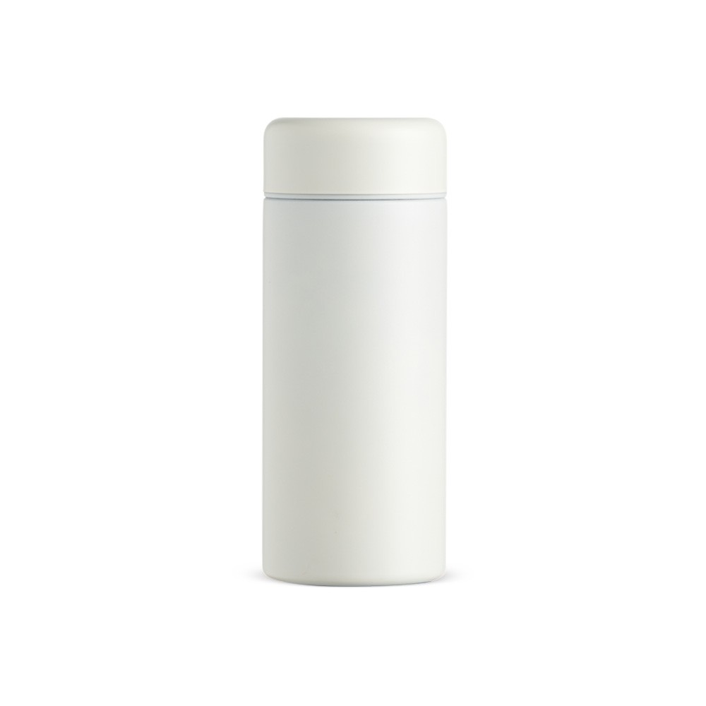 Garrafa térmica inox de parede dupla com capacidade de 200ml.