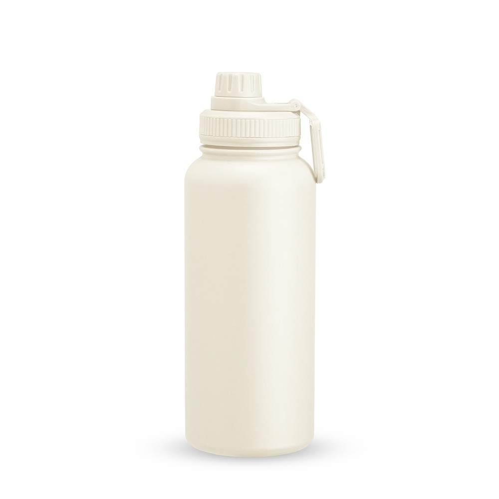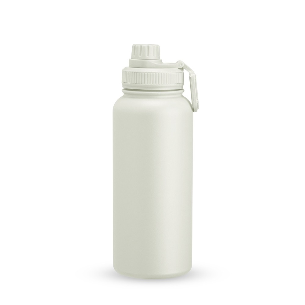 Garrafa térmica em inox com pintura eletrostática e capacidade de até 1 litro. Possui estrutura de parede dupla e isolamento a vácuo, permitindo a conservação de temperatura do líquido por mais tempo, além de evitar vazamentos. Possui tampa plástica rosqueável com proteção de coval e alça em formato retangular. Especificações: - Altura  25,5 cm - Largura  9 cm - Circunferência  28,5 cm - Medidas aproximadas para gravação(CxL)  15 cm x 9 cm - Tamanho total aproximado(CxL)  Diâmetro bocal 5,5 cm - Peso aproximado(g)  425
