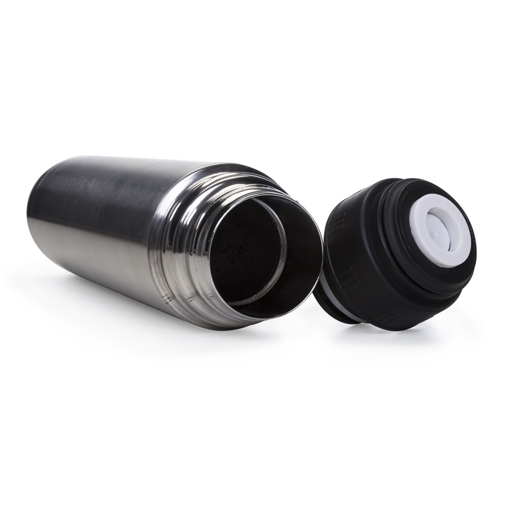 Garrafa térmica 1L em inox com tampa rosqueável, tampa interna em plástico resistente(basta um clique para abrir ou fechar). Acompanha capa protetora de couro sintético com alça em nylon e detalhe vermelho. Especificações: - Medidas aproximadas para gravação(CxL)  24,5 cm x 8 cm - Tamanho total aproximado(CxL)  32,8 cm x 8,1 cm - Peso aproximado(g)  637