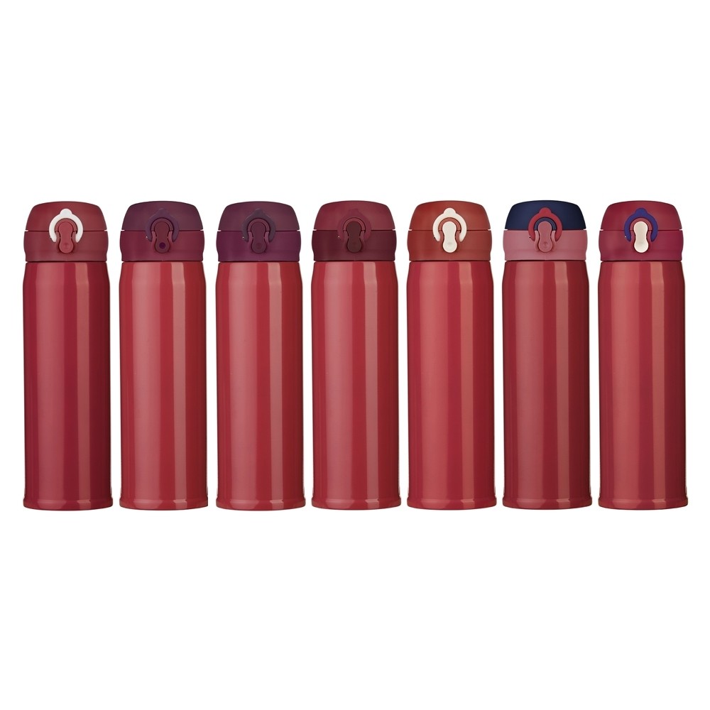 Garrafa térmica feita em inox com parede dupla, capacidade de 400ml. Tampa com trava de segurança e botão de acionamento. OBS.: CONSULTE A VARIAÇÃO DE CORES ATRAVÉS DA PALETA DE CORES!