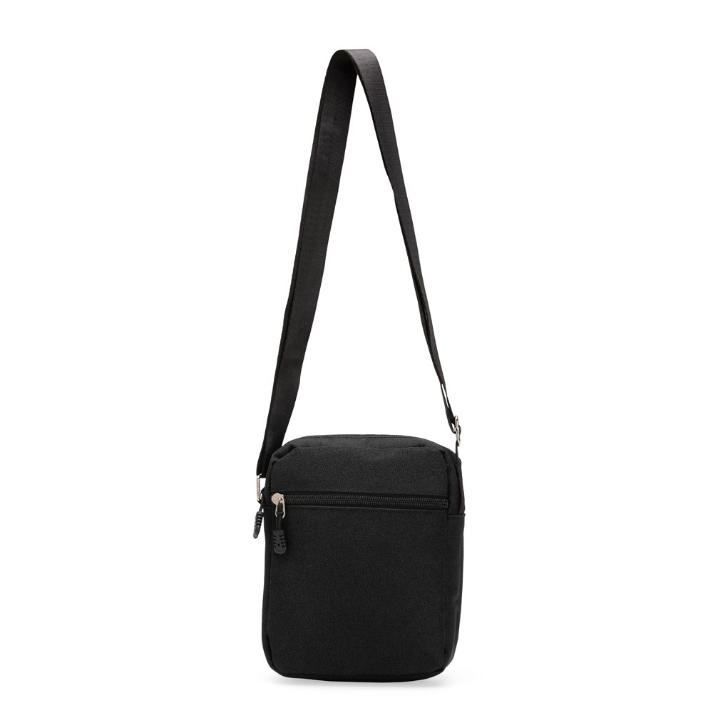 Mini bolsa confeccionada em tecido Oxford resistente à água e alça transversal ajustável em nylon. Possui fechamento em zíper e bolso frontal que facilita a organização de objetos. Especificações: - Altura  18,5 cm - Largura  15 cm - Profundidade  5,5 cm - Medidas aproximadas para gravação(CxL)  12 cm x 13 cm - Peso aproximado(g)  112
