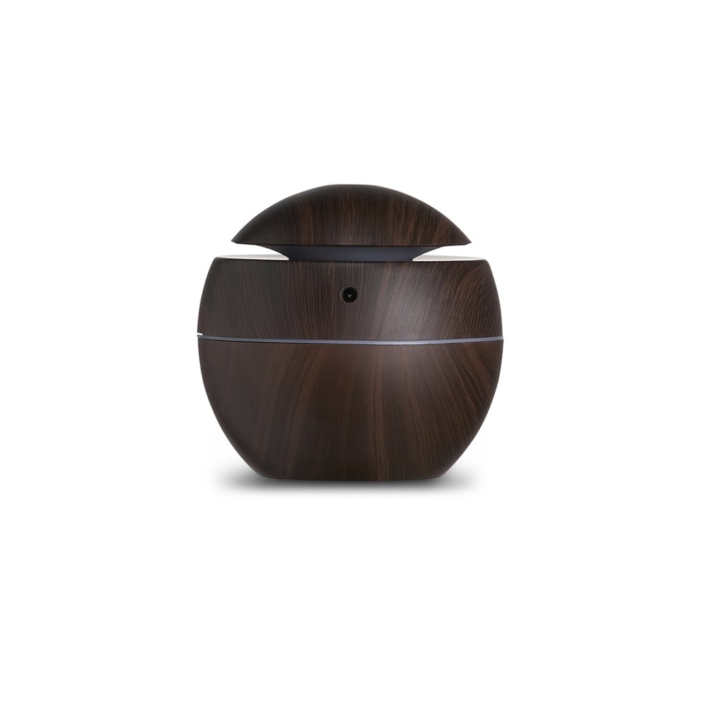 Mini umidificador ultrassônico com led que muda de cor. Acompanha filtro de algodão e um cabo USB. Capacidade para 130ml de água. Produzido em plástico e revestido por adesivo caracterizando madeira. Taxa de tensão DC5V e Taxa de consumo de 2W. O produto não retém energia, funciona somente com o cabo USB conectado a um meio de alimentação de energia. Obs.: para conservação do produto é recomendável utilizar água filtrada e não deve ser usado essências!