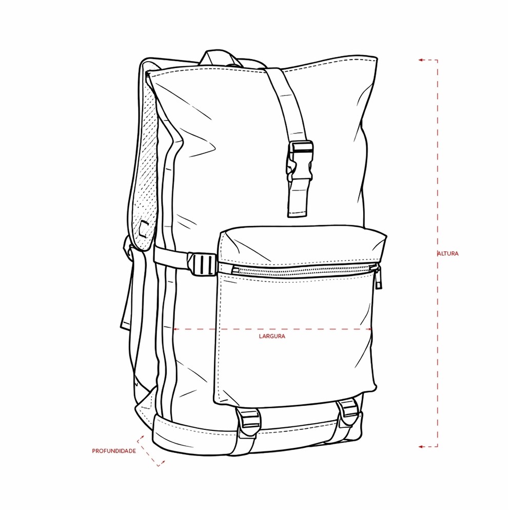 Mochila de couro sintético de 41 litros resistente à água. Possui dois compartimentos, sendo o principal com bolso para notebook de 15,6 polegadas. Possui fechamento por zíper e cinto com velcro, fivelas nas laterais para maior ajuste e engate para mala de viagem.