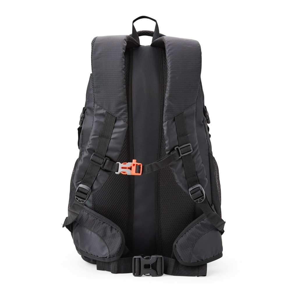 Leve tudo e mais um pouco com a nossa mochila de poliéster de 40 litros. Espaçosa e eficiente, possui três compartimentos, sendo o principal com um bolso para notebook de até 15,6 polegadas. Conta com divisórias internas para manter acessórios organizados e bolsos laterais de tela para acesso fácil aos itens essenciais. Esse modelo possui revestimento espumado nas costas para maior conforto e, para sua segurança, tem um detalhe refletivo na parte frontal, aumentando sua visibilidade em condições de pouca luz. Além disso, há um apito integrado em uma das fivelas, e as alças de compressão e compensação ajudam a distribuir o peso de forma equilibrada.