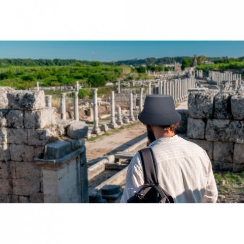 Panamá em poliéster 100% reciclado para os dias mais chuvosos Panamá em poliéster 100% reciclado, repelente à água. Confortável, leve e prático para o dia a dia, faça chuva ou sol. ø59 mm