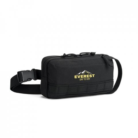 Pochete em poliéster reciclado 600D de alta densidade e forro em poliéster reciclado 210D. Possui um compartimento principal espaçoso, um bolso e tiras multifuncionais na parte frontal. A bolsa tem uma pega e alça ajustável que permite o uso à cintura ou a tiracolo. 240 x 130 x 80 mm