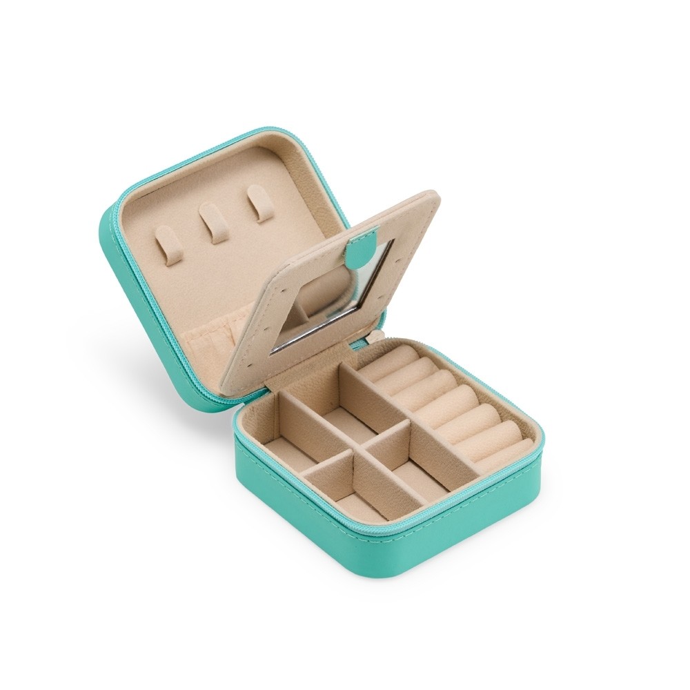 Organize anéis, brincos, colares, outros acessórios e o que mais quiser no nosso porta-joias de couro sintético com espelho. Suas divisórias são bem marcadas e cabem diversos itens, o espelho além de permitir dar aquela olhada no visual, também funciona como uma divisória entre o compartimento superior e inferior interno. Uma surpresa em espaço compacto!