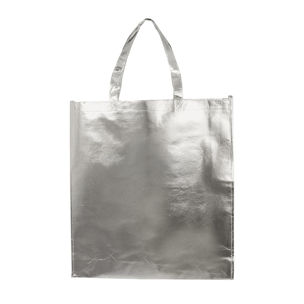 Sacola confeccionada em TNT com revestimento externo laminado e duas alças costuradas.