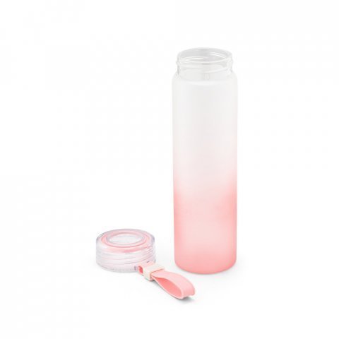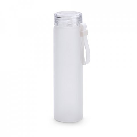 Squeeze em vidro borossilicato e tampa em AS com alça 470mL Squeeze em vidro borossilicato e tampa em AS, com alça em silicone para fácil transporte. Capacidade até 470 mL. Fornecido em caixa presente. Certificação EU Food Grade. ø60 x 210 mm