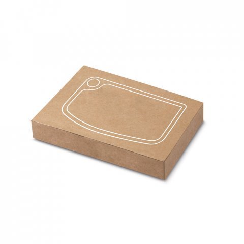 Tábua de madeira de acácia, proveniente de gestão florestal sustentável, com um rebordo à volta da tábua. A pega facilita o transporte e permite pendurar para melhor arrumação. Conjugue esta tábua com a Haven - 54293 - para completar o conjunto. Fornecida em caixa de oferta de papel kraft reciclado. Certificação EU Food Grade. A cor e o resultado da impressão nos materiais naturais pode variar entre produtos. 150 x 267 x 15 mm